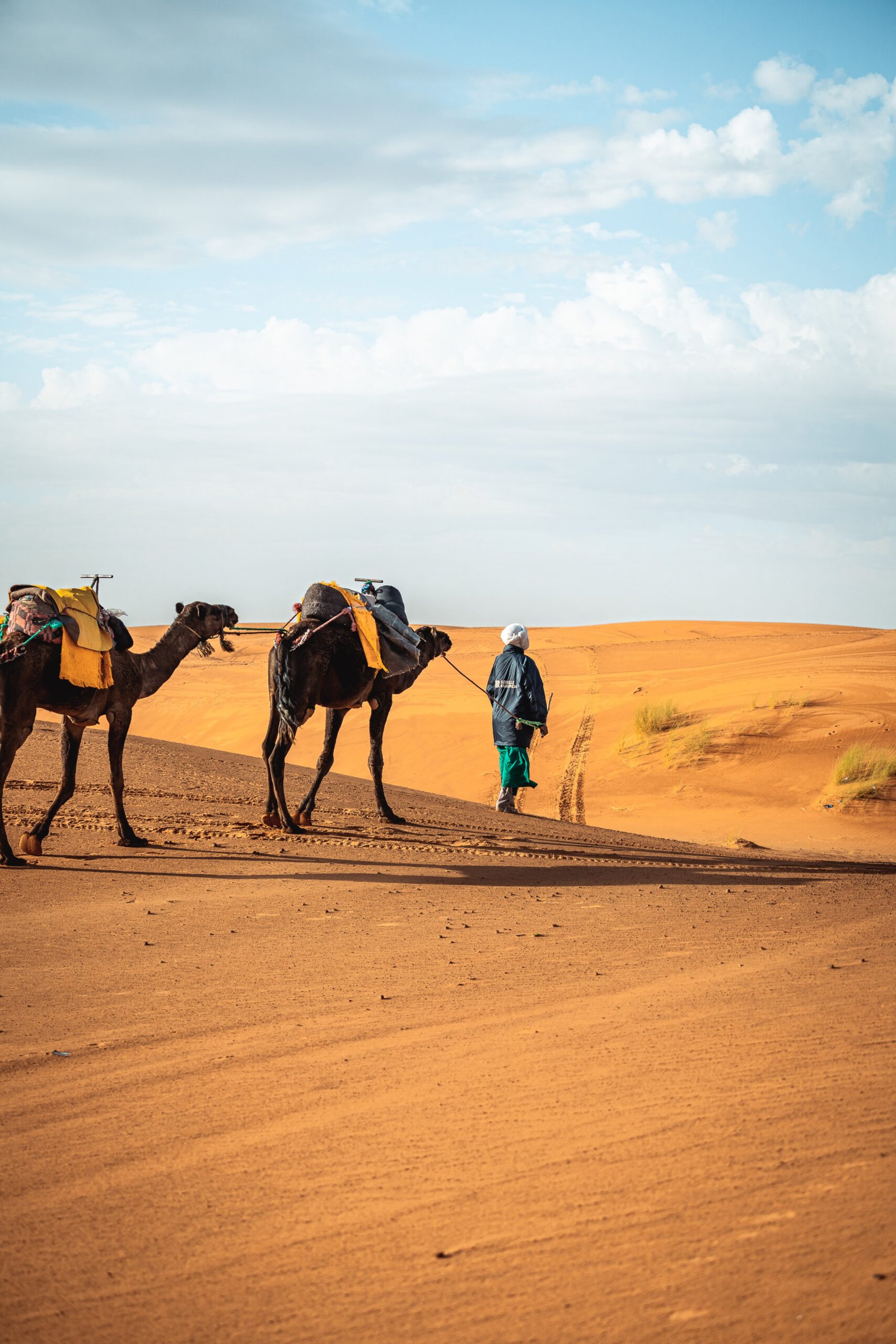 The final stage brings a change of scenery as the caravan makes its way back toward M’hamid. After five hours of walking, the trek concludes with a well-deserved rest in camp, marking the end of an unforgettable desert journey.
