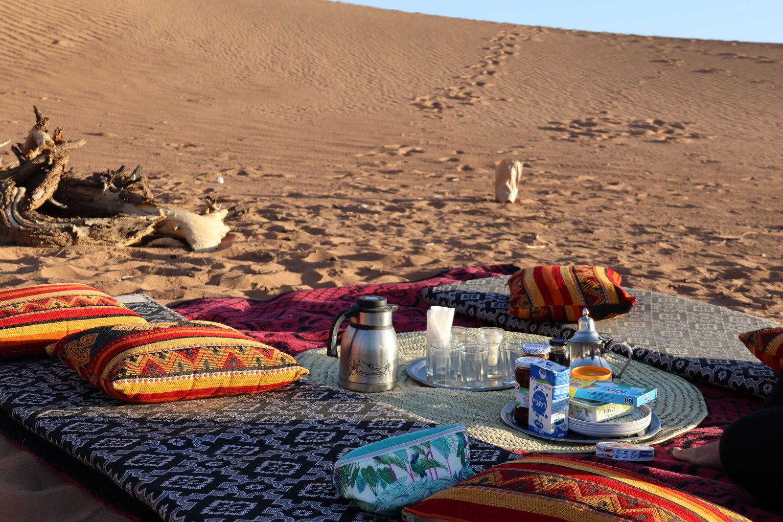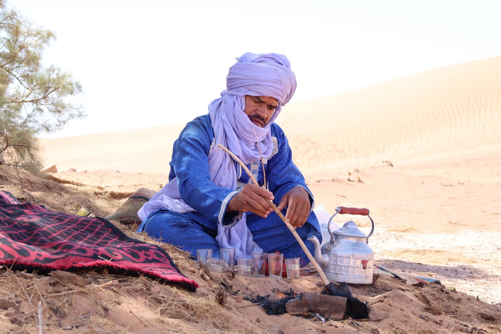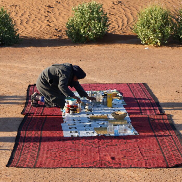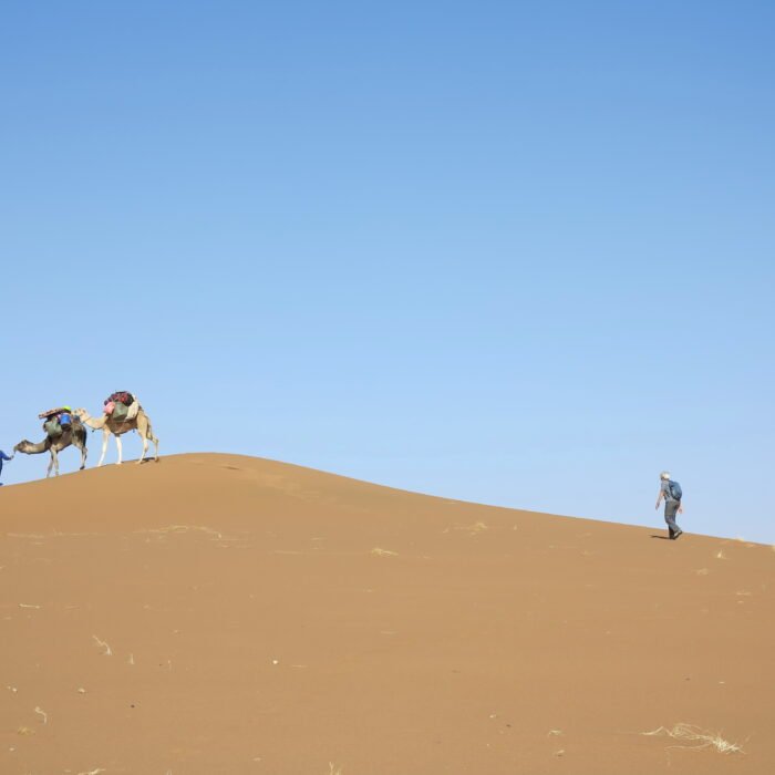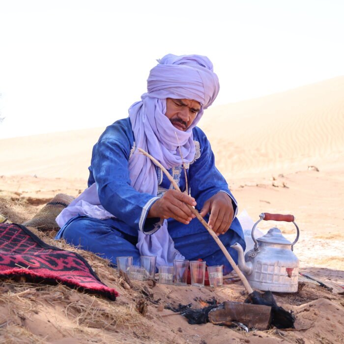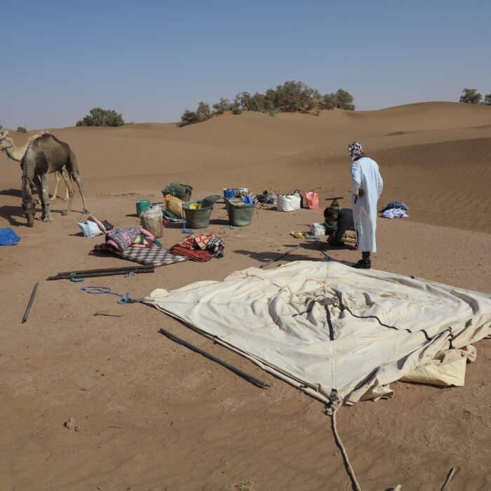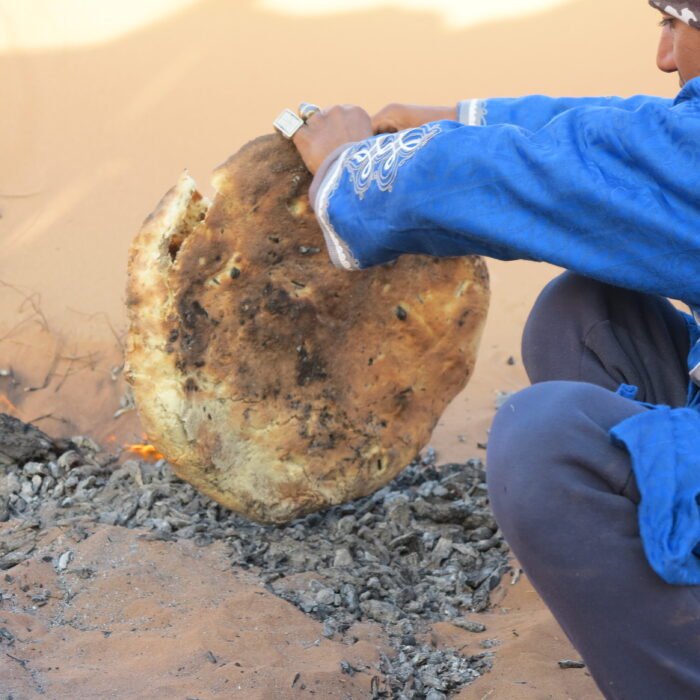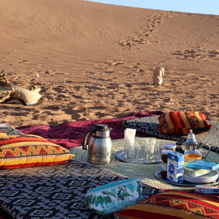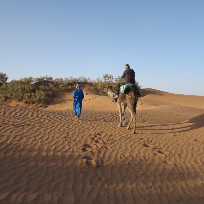 Wake up early to savor the calm of the desert morning. After breakfast at camp, the return journey begins by 4×4 across the desert tracks. Arrival in M’hamid is around 10:30 a.m., marking the end of your desert experience.