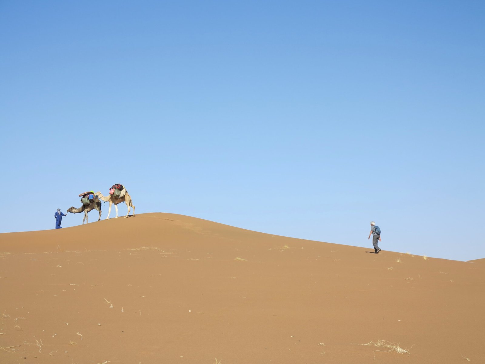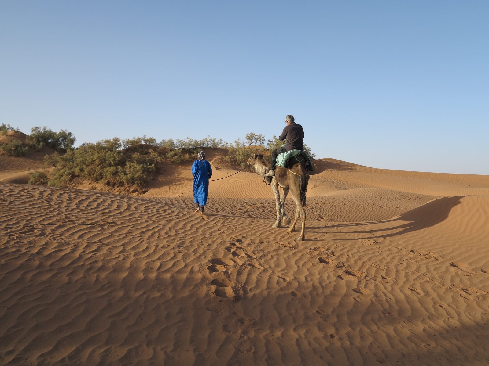 After breakfast, set off in a 4×4 excursion across the dunes, enjoying a picnic in the heart of the desert while taking in the vast landscapes and silence of the Sahara. In the afternoon, return to camp to relax. Later, a camel ride takes you deeper into the dunes to watch the sunset, accompanied by an aperitif on the sand. The evening continues at the camp with dinner, music, and another night under the desert sky at Star Camp Lodge.