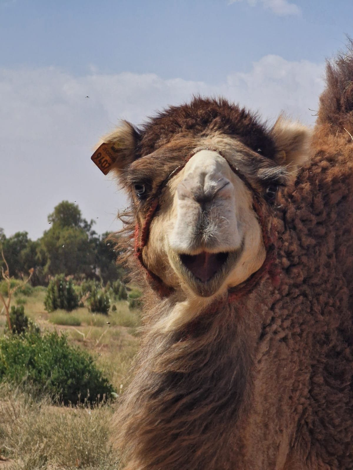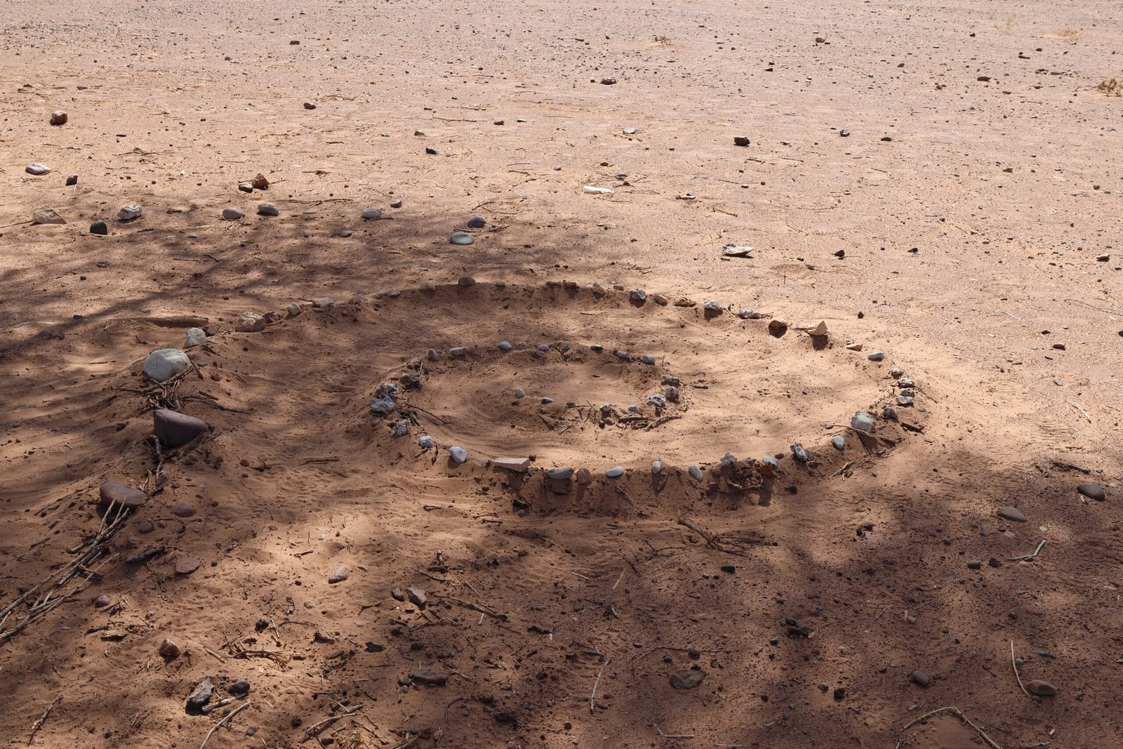 Leaving Kraat Jemal behind, the group crosses the stone desert during a one-and-a-half-hour walk before stopping for lunch beneath the shade of an acacia tree. The journey then continues through Wadi Naam, where water supplies are replenished and the camels are watered at a well. After another hour’s walk, the caravan reaches Bertham, where camp is established for the night.